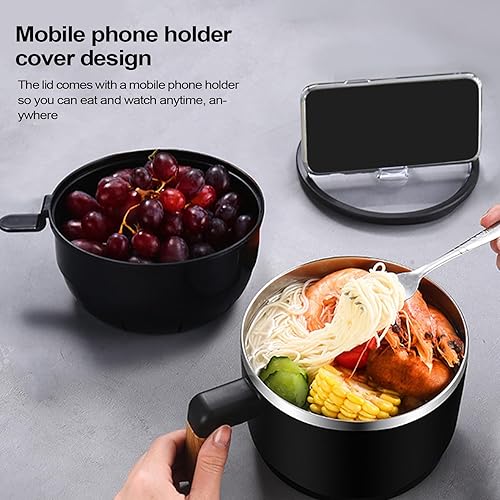 Duroecsain Bol ramen au micro-ondes avec passoire, bol à nouilles au micro-ondes | Bol à micro-ondes Ramen Pot - Bols de nouilles au micro-ondes, bol Ramen en acier inoxydable pour nouilles, gumbo,