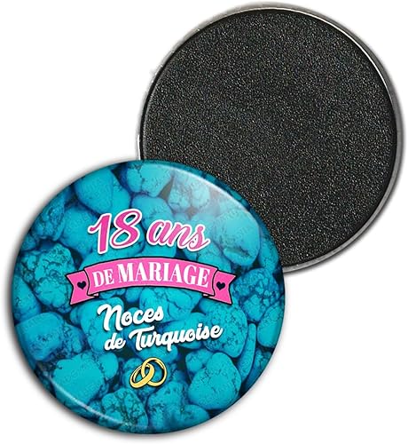 Badgmania Magnet Aimant 3.8cm | Anniversaire 18 Ans de Mariage Noces de Turquoise | Diamètre 3.8cm | Anneaux Mariage