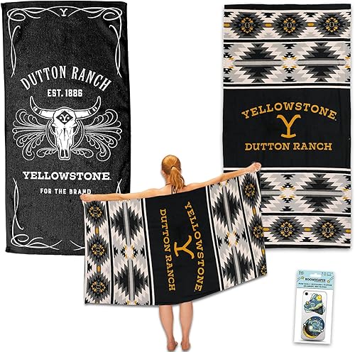Yellowstone – Lot de 2 serviettes de plage Yellowstone avec 2 serviettes de piscine Dutton Ranch et autocollants | 76,2 x 152,4 cm – Serviettes de plage Yellowstone pour homme, femme, adulte