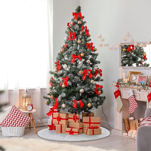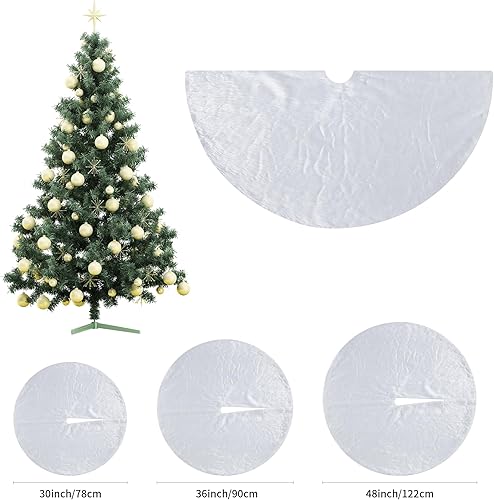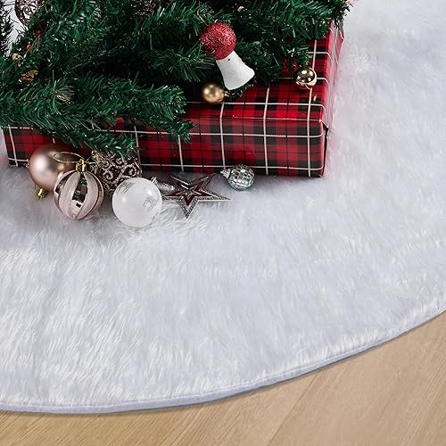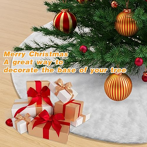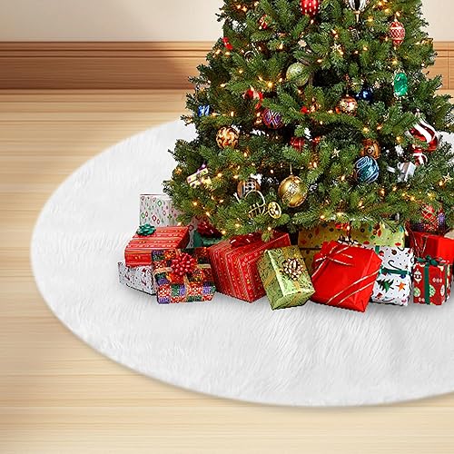 90 cm Jupe de Sapin de Noël Blanche Jupe de Sapin de Noël en Fausse Fourrure Ronde Jupe de Sapin de Noël Jupes pour Joyeux Noël Décoration d'arbre de Noël