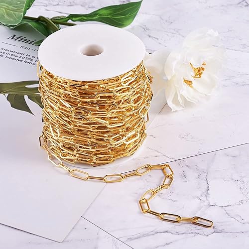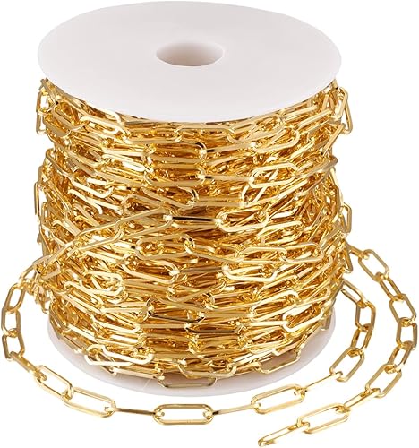Rouleau de 25 m de chaîne trombone dorée 15 x 6 mm à maillons ovales plats pour fabrication de bijoux