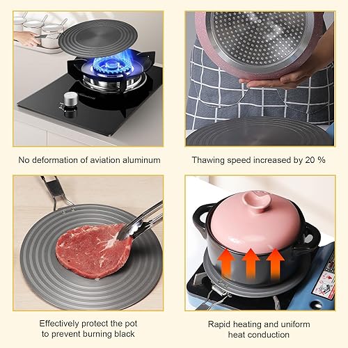 Qivine Adaptateur Plaque Induction 28cm avec Poignée Pliable - Plaque en Aluminium Facile à Nettoyer pour Cuisinière Électrique, Gaz, Marmite, Bouilloire