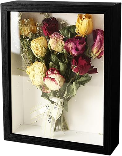 Générique Cadre photo 3D en bois, cadre d’objet 30X40 cm, cadre de boîte d’ombre, cadre de vitrine de fleurs profondes(Black)