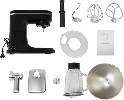 Donened Robot de cuisine 3 en 1, 1500 W, pétrisseur multifonction, mixeur à 6 + 1 niveaux, hachoir à viande, presse-agrumes de 1,5 l, bol en acier inoxydable de 6 l, robot de cuisine universel (noir)