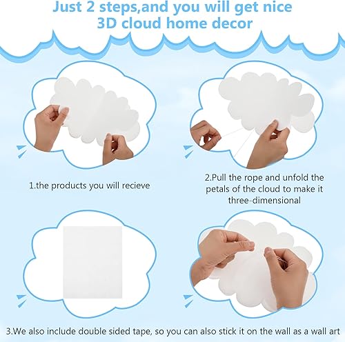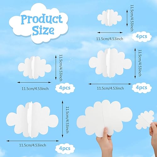 Ouligay Lot de 16 nuages artificiels en feutre à suspendre pour plafond, décoration de mariage, chambre d'enfant, décoration de fête