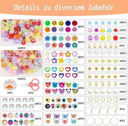 48 Couleurs Perles pour Bracelet, Kit Bracelet Perles Lettres pour Bracelet, Kit Bracelet Perle, Perles pour Bijoux DIY avec 150 Perles de Lettres A - Z, Perles pour Bracelet, Cadeau pour Les Filles