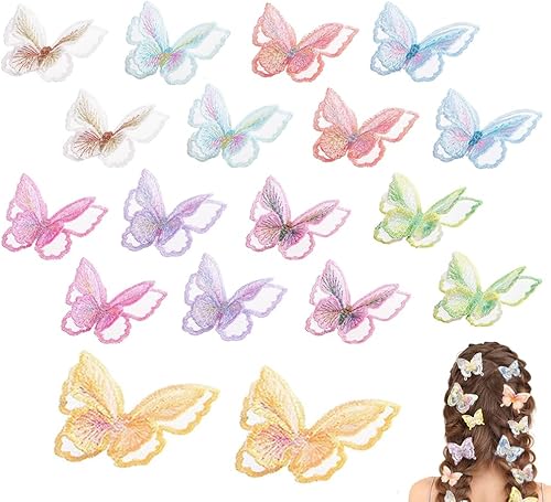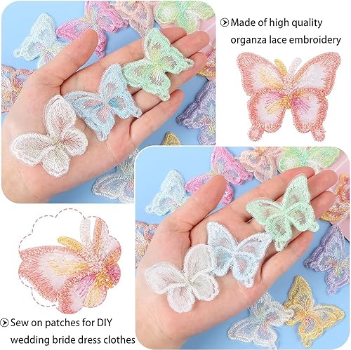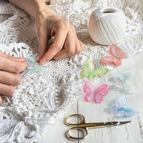 JAONLD 18 Pièces Papillon Decoration Patchs, Tissu Dentelle Patch a Coudre, Neuf Couleurs Ecusson A coudre, pour Tenues de Soirée, Vêtements de Danse, Décorations de Mariage, Sacs
