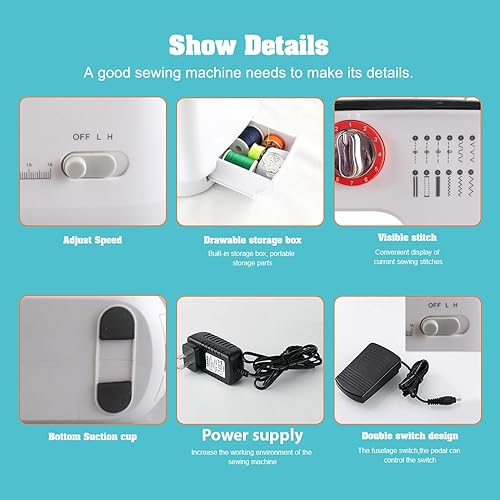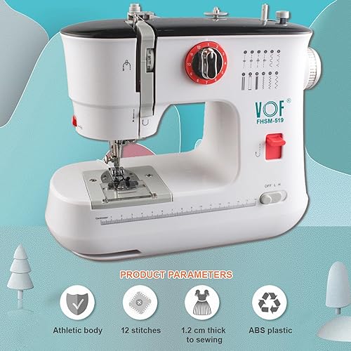 Dekaim FLSM-519 Machine à coudre électrique pour débutants et enfants, 12 programmes de points, bras libre, lumière de couture et pédale électrique, prise UE