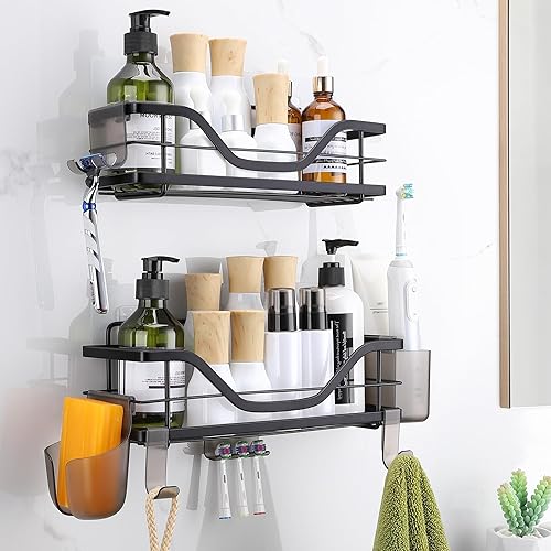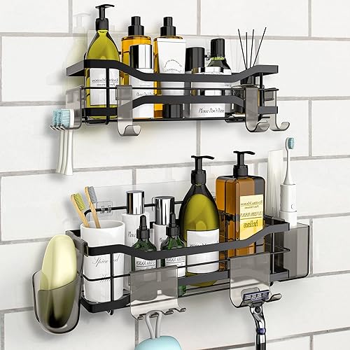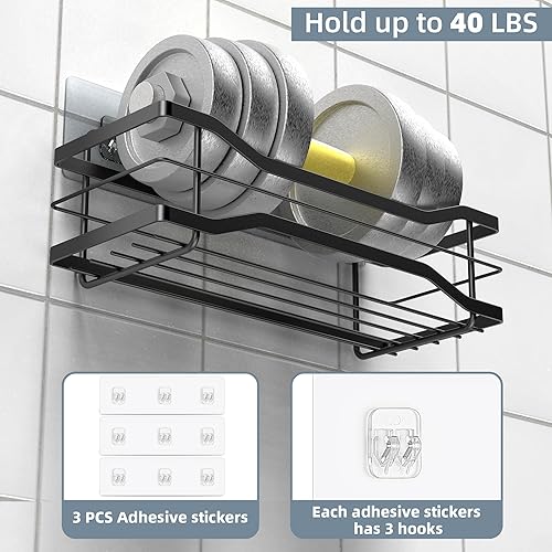 OETAMS Etagère Douche Lot de 2, Etagere Douche sans Perçage, Rangement Douche, Inoxydable Etagere Murale Douche, Adhesive Porte shampooing Noir