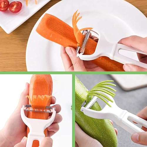 econome legumes eplucheur légumes julienne pomme de terre legume decoupe legumes éplucheur de Légumes, Gentle, Lame en acier inoxydable grossièrement dentelée et emporte-pièce(Blanc)