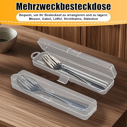 Mnsconkl Lot de 3 boîtes à couverts pour les déplacements - En plastique - 27 cm - Réutilisables - Pour l'extérieur, les voyages, le camping, l'école