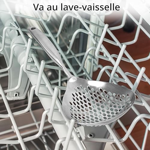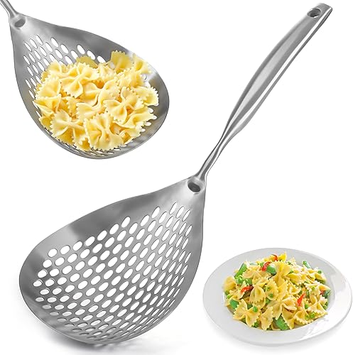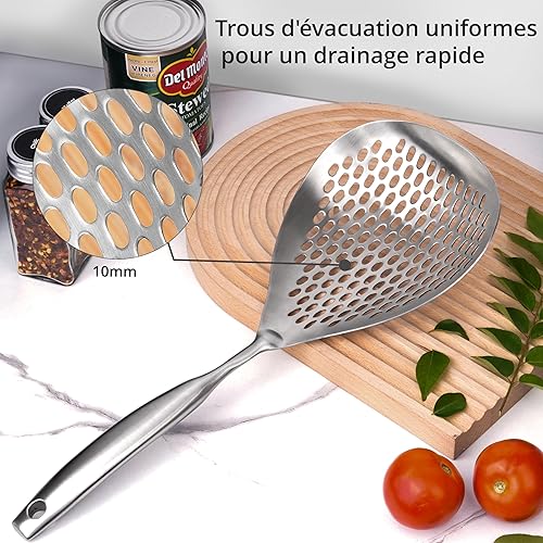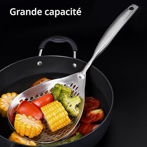 Winter Shore Cuillere Écumoire à Trous - Spatule Passoire en Acier Inoxydable de Qualité Alimentaire 38cm - Pour Frire, Cuisiner & Égoutter - Manche Ergonomique - Compatible Lave-vaisselle & Durable