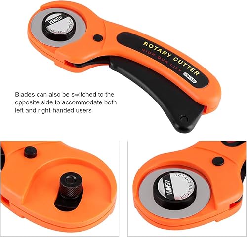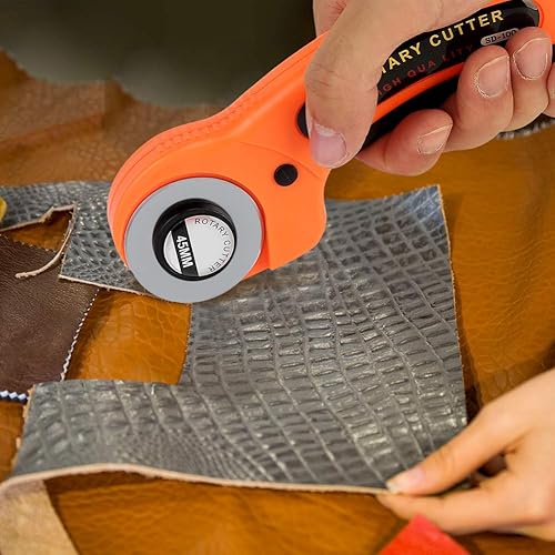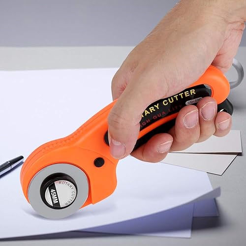 Emporte-pièce rotatif en alliage d'acier de 45 mm et outil de rembourrage de 5 lames de rechange pour tricot de crochet avec tissu de coupe de rouleau de poignée de sécurité (lot de 6)