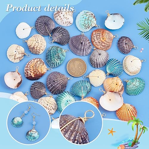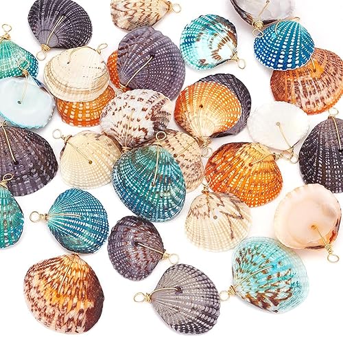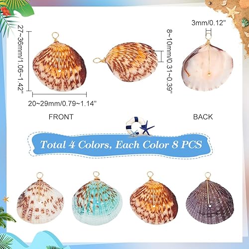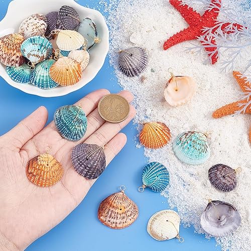 PH PandaHall 32pcs Breloques en Coquillage Naturel 4 Couleurs Breloques Pétoncles Teints Coquillages de Plage Breloques Teints Pendentifs de Coquillages D'Été Enveloppés pour Bracelets Bricolage