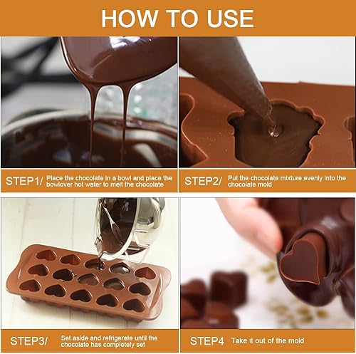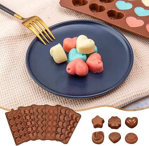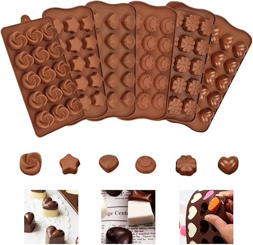 skytowards 6 PCS Moules à Chocolat en Silicone, Moule Bonbon en Forme de Cœur, Étoile, Fleur, Coquillage, Moule à 15 Trous pour Gelée, Bonbons, Glaçons