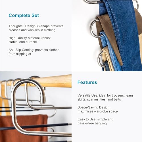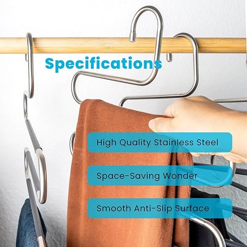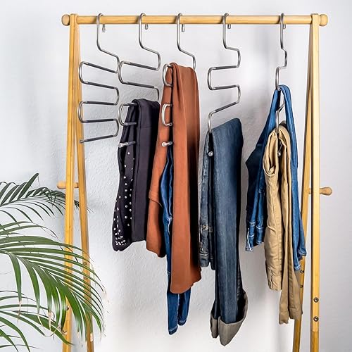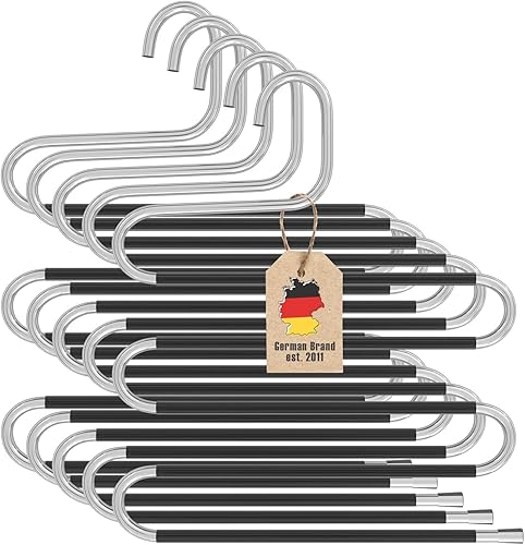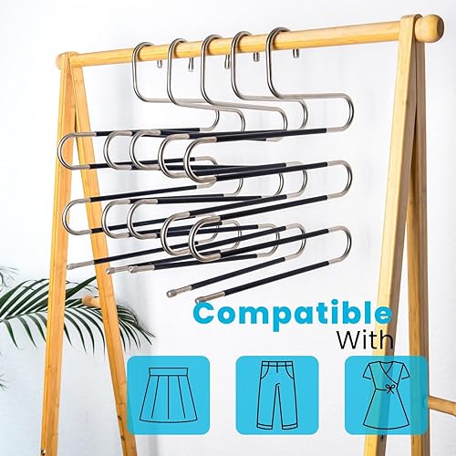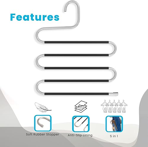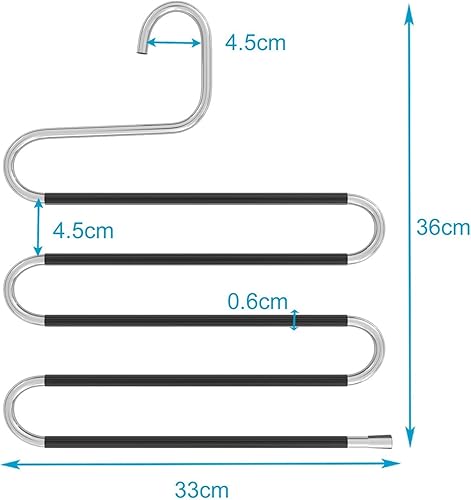 Intirilife Cintre Pantalon en Forme de S-5 pièces -Acier Inoxydable- 36 x 34.3cm- Cintre Gain de Place antidérapant- Organisateur pour 5 Pantalons Jeans écharpes- Cintre Multiple anit-Glisse, Noir