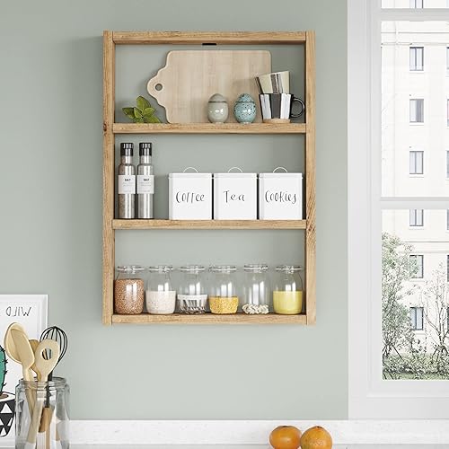 [en.casa] Étagère de Cuisine à 3 Niveaux Meuble de Rangement Mural Porte-Épices Panneau de Particules Mélaminé 60 x 43 x 9 cm Effet Chêne Rustique