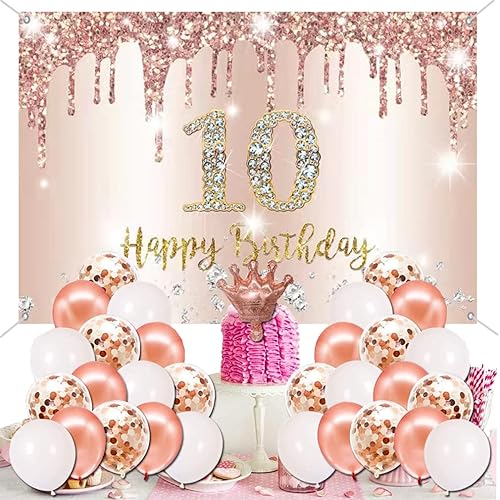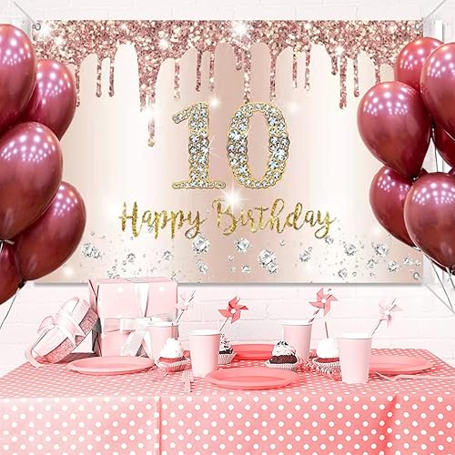 Bannière décorative 10e anniversaire fille or rose, 10e anniversaire tissu panneau affiche fond bannière fille fête d'anniversaire décoration
