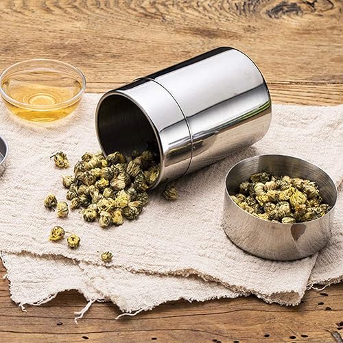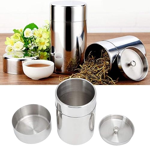 Jenngaoo Boîte à thé, boîte à thé portative en acier inoxydable 304 avec double couvercles hermétiques, récipient à grains de café pour la cuisine et le restaurant à la maison(S 400ML)