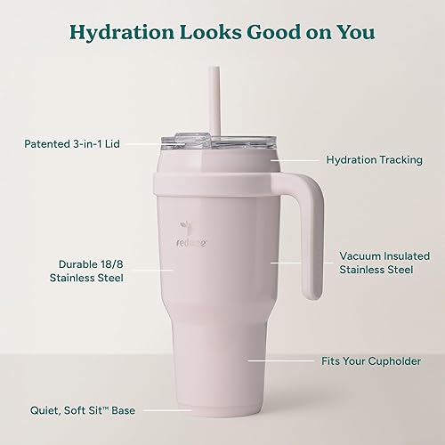 REDUCE Gobelet de voyage en acier inoxydable de 1200 ml avec poignée – Tasse de voyage isotherme à double paroi sous vide, couvercle anti-transpiration et paille réutilisable – Garde les boissons