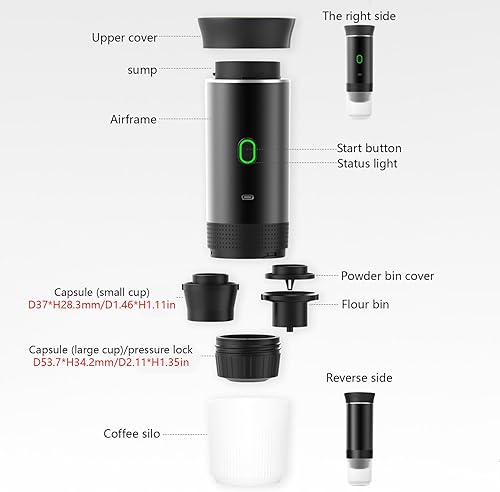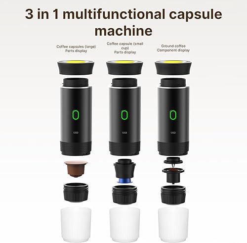 Irishom Machine à café portable avec tasse de 150 ml, cafetière électrique sans fil 3 en 1 fonctionne avec capsule et café moulu mini cafetière à froid et chauffage pour voiture, maison, voyage