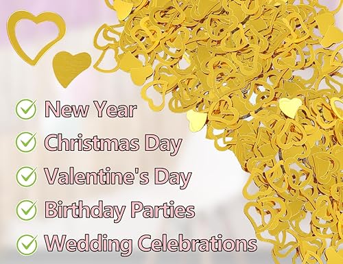 KAPSING Lot de 600 à 700 confettis de mariage en or – Décoration de table, paillettes, cœur – pour décoration de mariage