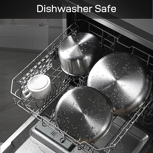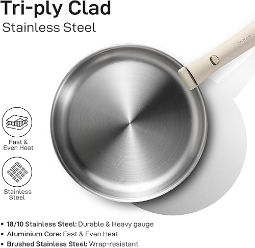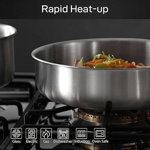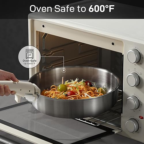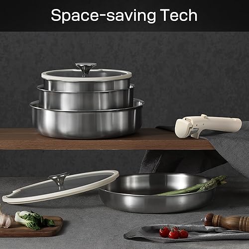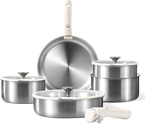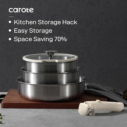 CAROTE 10 Pièces Batterie de Cuisine Induction Inox, 18/20/22cm Casseroles Induction, 26cm Poele, 26cm Sauteuse, Poignée Amovible, Couvercles, Base Epaisse, Passe au Four/Lave-Vaisselle