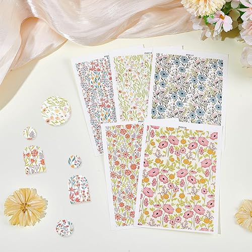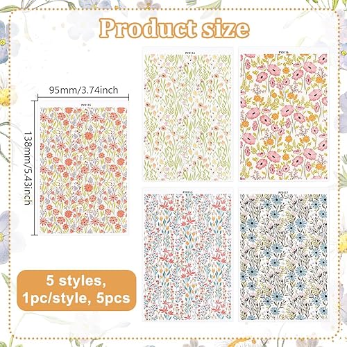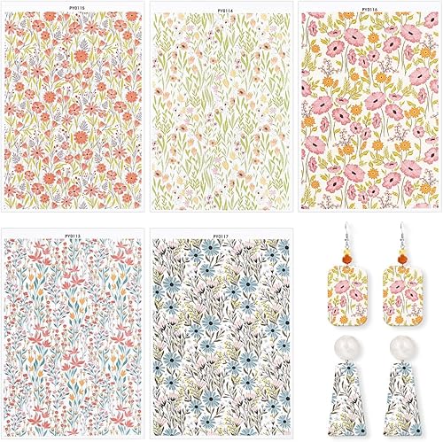 UNICRAFTALE 5 pièce 5 styles Feuille de Transfert en Argile Polymère à Motif de Fleurs Sauvages Papier de Transfert Vintage pour la Fabrication de Bijoux Boucles D'Oreilles et Accessoires