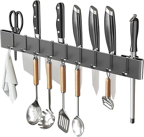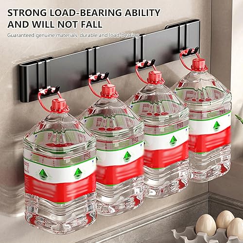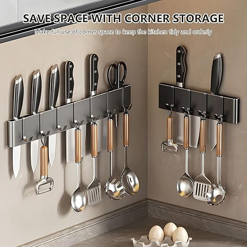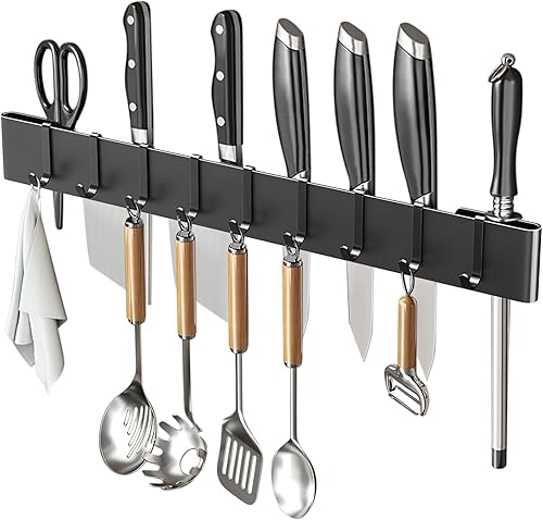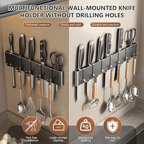 Cintre à ustensiles de cuisine de 50 cm : 9 crochets, support de suspension, sans perçage, pour cuisine, garde-manger, salle de bain (noir)