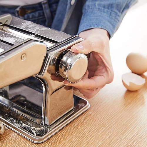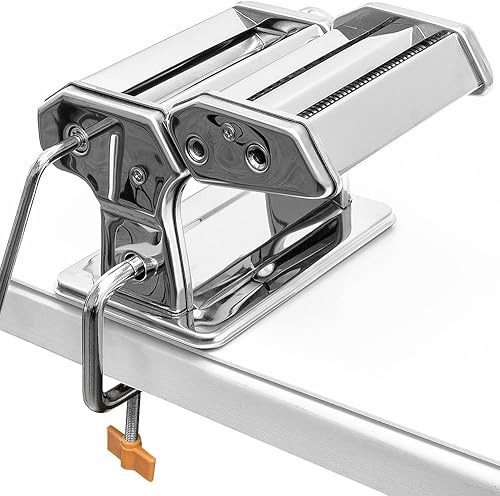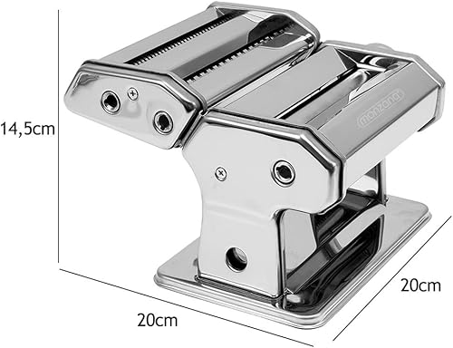 MONZANA® Machine à pâtes manuelle en acier inoxydable, 9 épaisseurs, 2 rouleaux, support de table, manivelle, spaghetti, nouilles à ruban, lasagnes, cuisine, argent