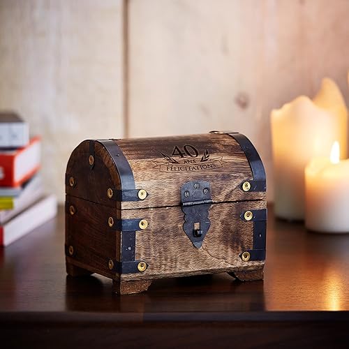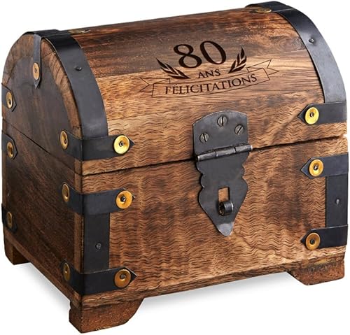 Casa Vivente - Malle au trésor - 50ème Anniversaire - Gravure - Petite - Foncée - Coffret - Boîte à Bijoux - Tirelire - Boîte de Rangement en Bois - Idée Cadeau Originale - Homme - Femme