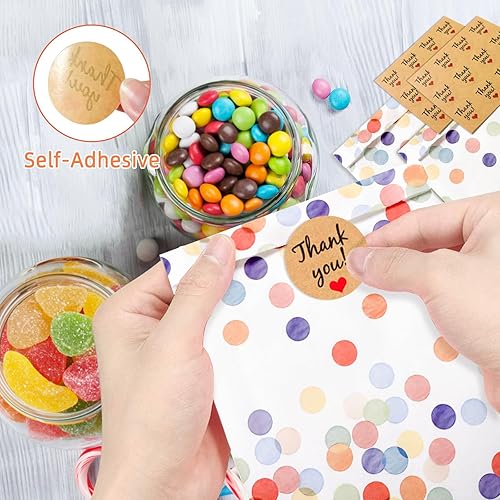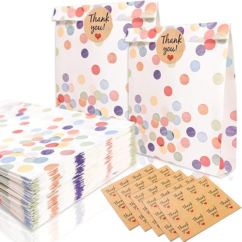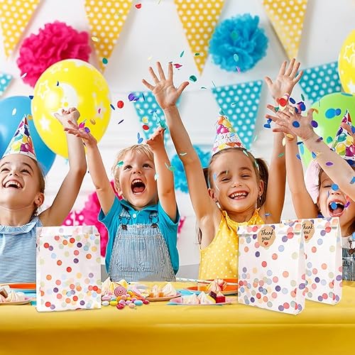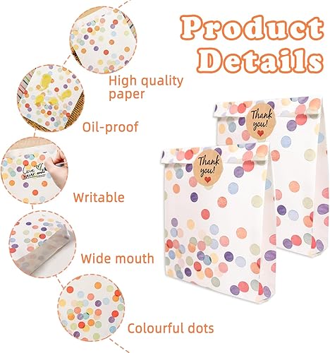 TAIHOBO Pochette Cadeau, 50 Pièces Sachet Anniversaire Enfant, 19×13×3,5cm Sachet Cadeaux à Pois avec 60 Autocollants, pour Emballage Cadeau de Fête Festival Mariage