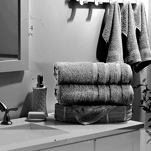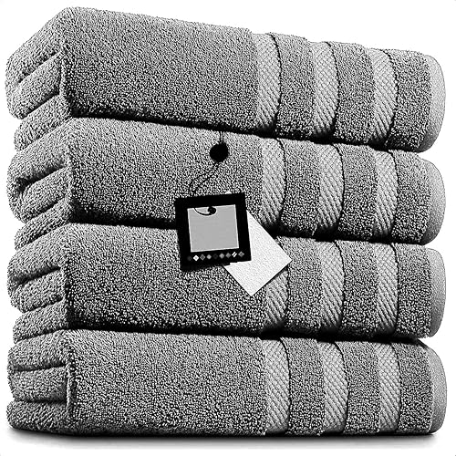 TOWELBAY Lot de 4 draps de bain extra larges 100 % coton égyptien - surdimensionnés (100 x 200 cm - 600 g/m²) à séchage rapide (gris anthracite)
