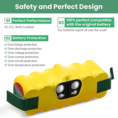 14.4V 4500mAh pour irobot roomba Batterie de Remplacement 4,5Ah Ni-MH R3 500 600 700 800 900 Series Batterie pour aspirateur 510 530 532 535 540 550 560 580 620 630 650 660 770 780 790 880