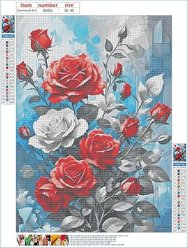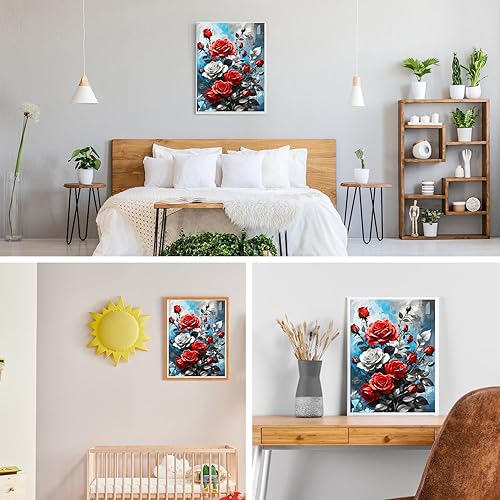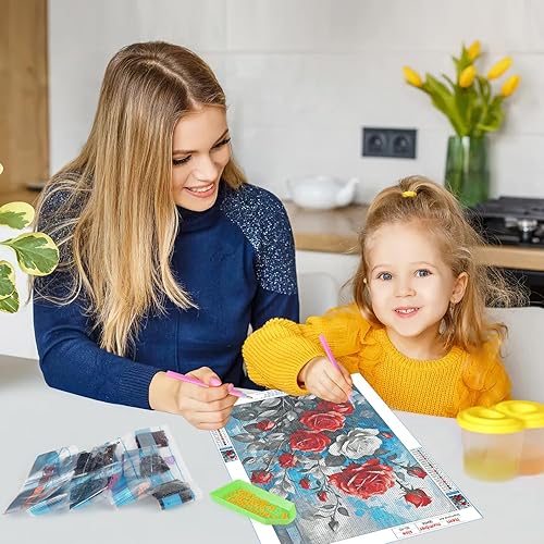 GDYEEH 5D Rose Peinture Diamant Painting Kit, DIY Fleurs Art du Diamant Complet Kits, Flowers Diamond Art Kits Strass Point de Croix Painting pour Adultes Débutants Maison Décor 30x40 cm