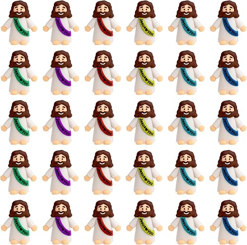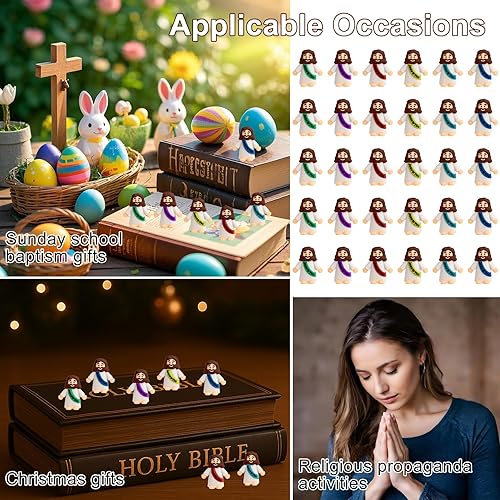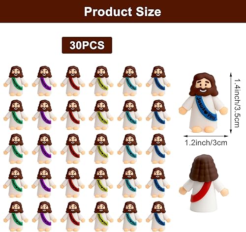 Lot de 30 mini figurines Jésus, jouets Jésus, statue chrétienne, ornements de Jésus, kit de bricolage, décorations de Pâques, cadeaux de baptême, Christ Sauveur pour Noël religieux, récolte