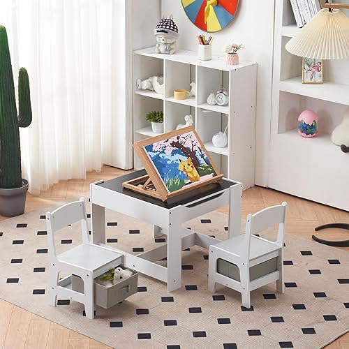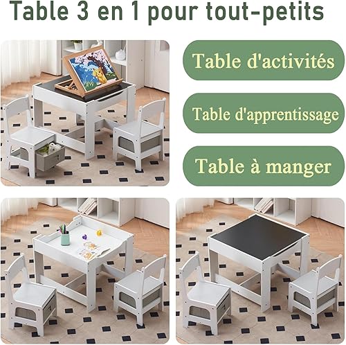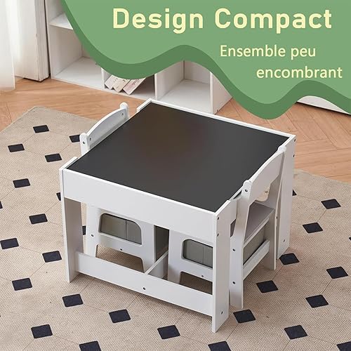 LALAHO Table Enfant avec Chaise de Rangement, Bureau Enfant Amovible, Table multifonctionnelle Pouvez Dessiner et écrire, Convient aux d'âge Scolaire pour Chambre, École (Naturel)