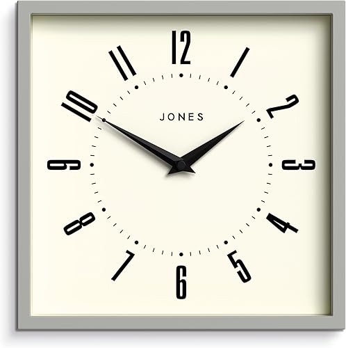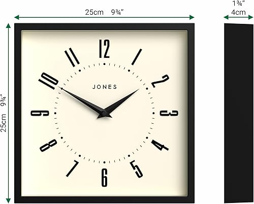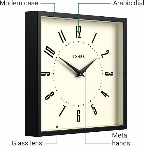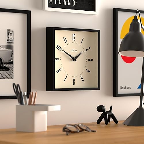 JONES CLOCKS® Box Horloge Murale | Horloge carrée rétro | 25 cm | Noir | Chiffres faciles à Lire | Horloge de Cuisine ou de Bureau Parfaite