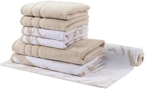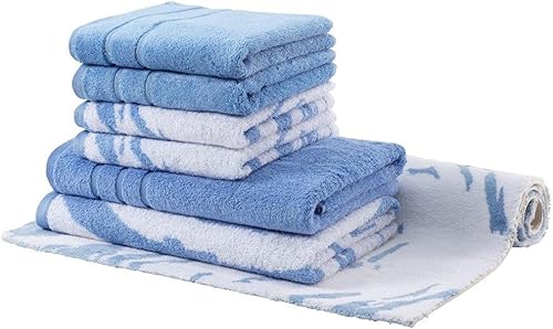 Egeria Ensemble de Serviettes de Toilette, Serviettes de Bain et Tapis de Bain en marbre 515 Titane 70 x 120 cm