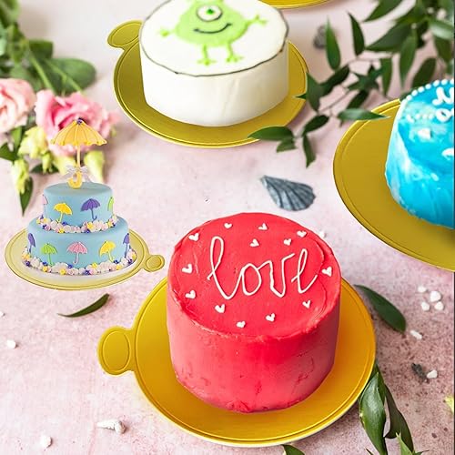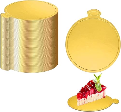 trabag Lot de 100 planches à gâteau rondes, jetables, en mousse, 9 cm, pour décoration de gâteau, en carton, pour mariage, anniversaire, pâtisseries (doré)