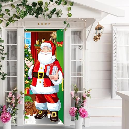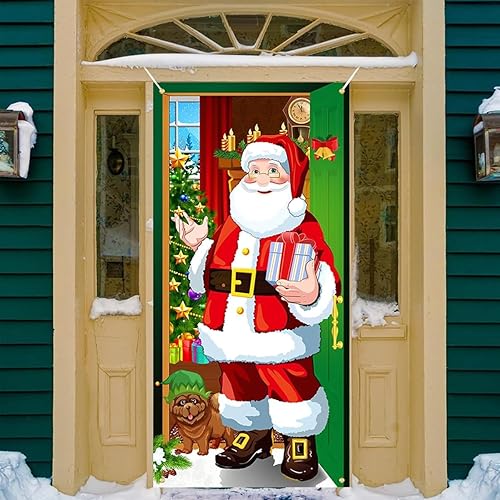 yivom 185X90 cm Couverture de Porte du Père Noël, Décoration de Porte du Père Noël, Bannière de Porte de Noël, Couverture de Porte Noël, Porte Suspendue pour Noël