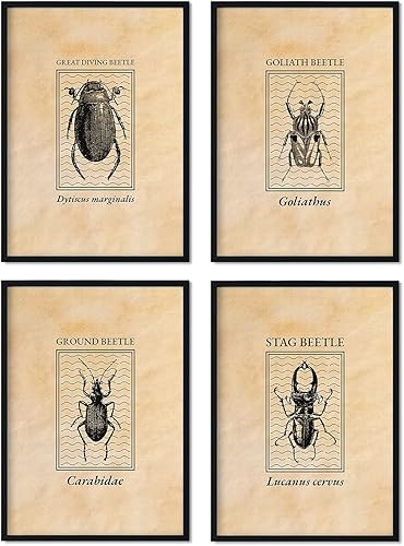 Nacric Vintage Lamina coccinelle. Affiches d'insectes dans un style gravé et des sopia. Décoration d'intérieur. Taille A4 avec cadre.