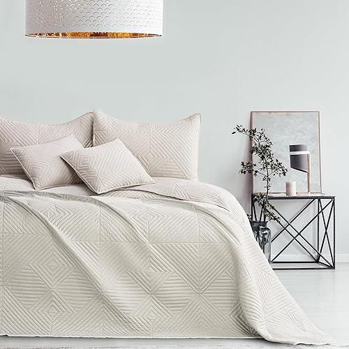 RESTILO Couvre-lit 260 x 280 cm crème beige clair Jeté de lit double face surpiqué ultrasonique en polyester Softa