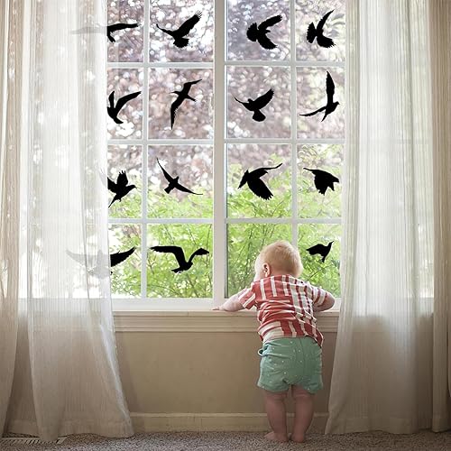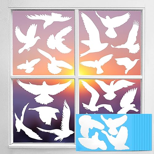 37 Pcs Autocollants Anti-collision Oiseaux, Réutilisable Autocollant Statique Motif Oiseau, pour Empêchement d’Impact d'Oiseau et Gens sur Verre Fenêtre (Blanc)