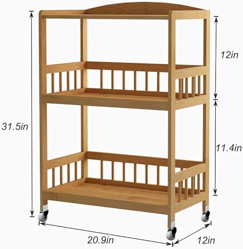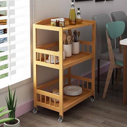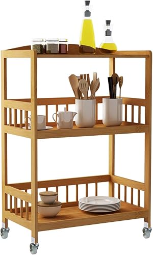 soges Bamboo Chariot de Service Kitchen Serving Storage Trolley Support Étagère de Cuisine sur Roues pour Salle de Bain 53 x 30,5 x 80 cm