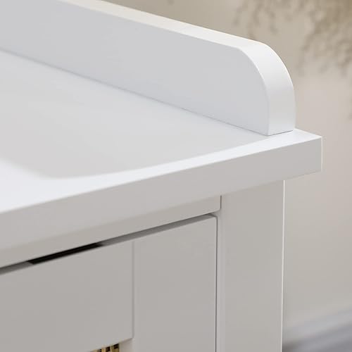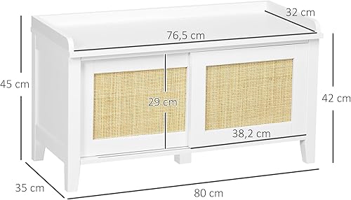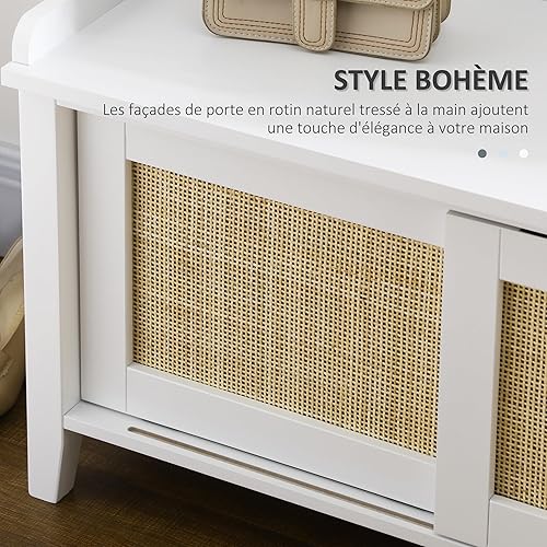 HOMCOM Banc à Chaussures Meuble de Rangement avec étagère sur Pieds 2 placards avec façades cannage Blanc