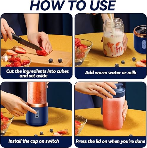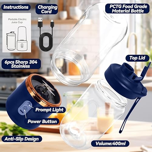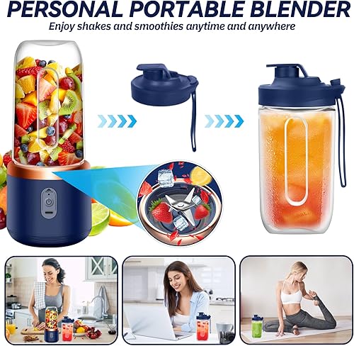 XUNIVERS Mixeur Portable Électrique de 400 ml,mélangeur pour smoothies,mini mélangeur portable,Brosses et 6 Lames, Mixeur Portable, Mini Blender Smoothie pour la Préparation de Milk-Shakes