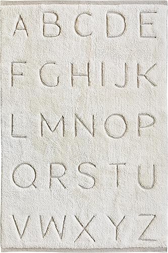 THE DECO FACTORY Kids ABC - Tapis Enfants Lavable en Coton Motif Alphabet Relief Naturel 100x150
