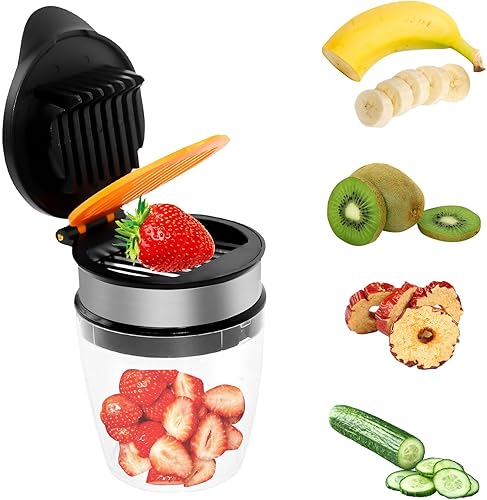 Trancheuse de Fruits, Trancheuse à Tasse Trancheuse à Fraises avec Tasse Transparente, Trancheuse Fraise Manuel Trancheuse Rapide pour Fraises Bananes Oufs Légumes