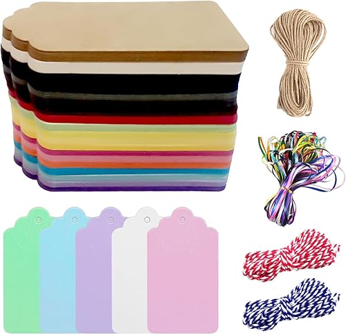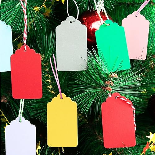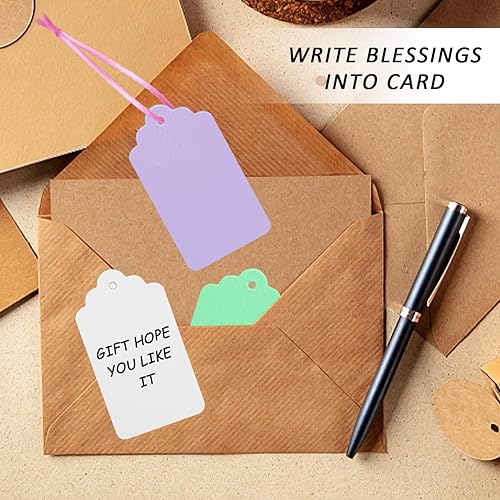 Lot de 200 étiquettes cadeaux colorées à suspendre avec ficelle, étiquettes en papier kraft, adaptées aux étiquettes de mariage, vêtements, cartes de message